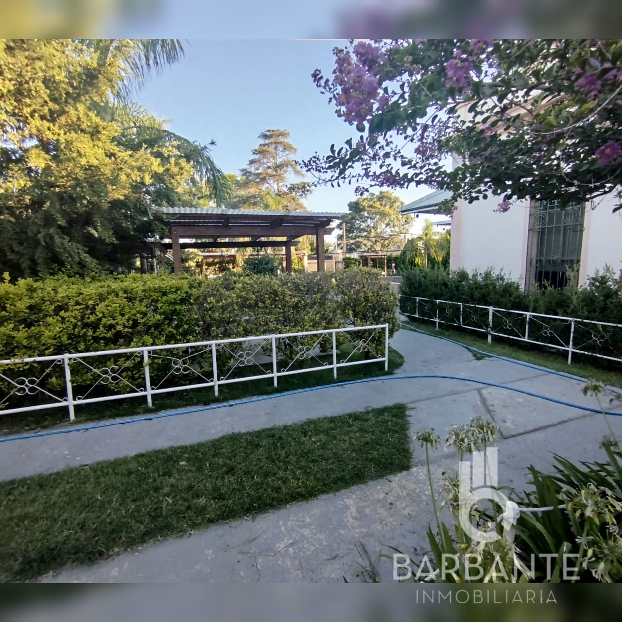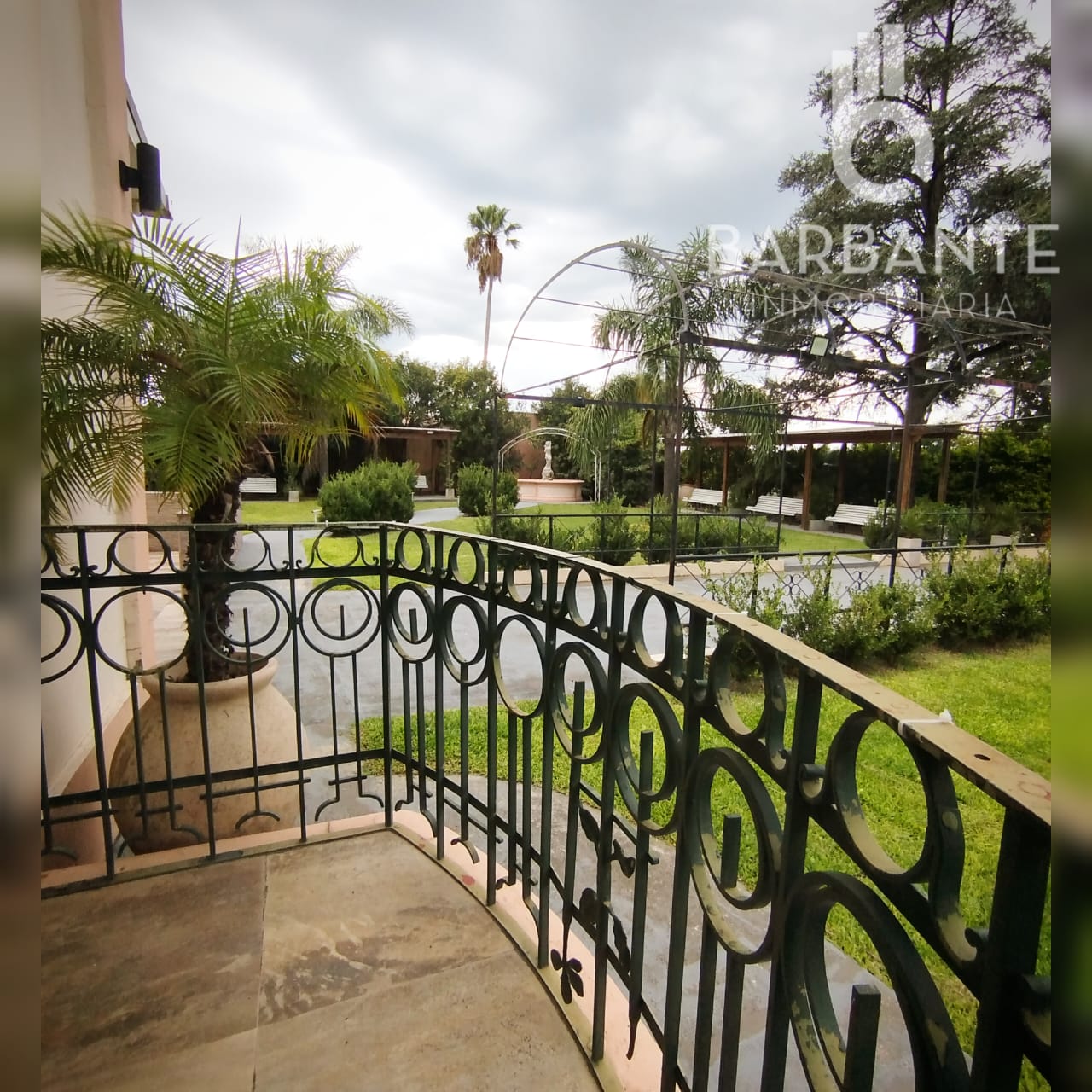 Merece párrafo aparte su majestuoso jardín con diferentes pérgolas rodeadas de plantas y flores, iluminarias y una imponente fuente de mas de 90 años.